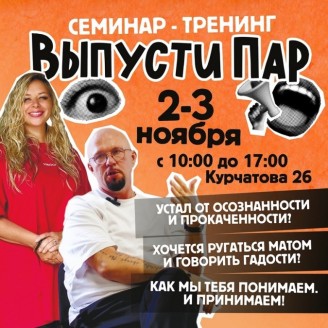 13.10.2025 1-2 ноября с 10:00 до 17:00 по адресу: Курчатова 26 Юрий Игельстром и Лена Савельева проведут тренинг «Выпусти пар».