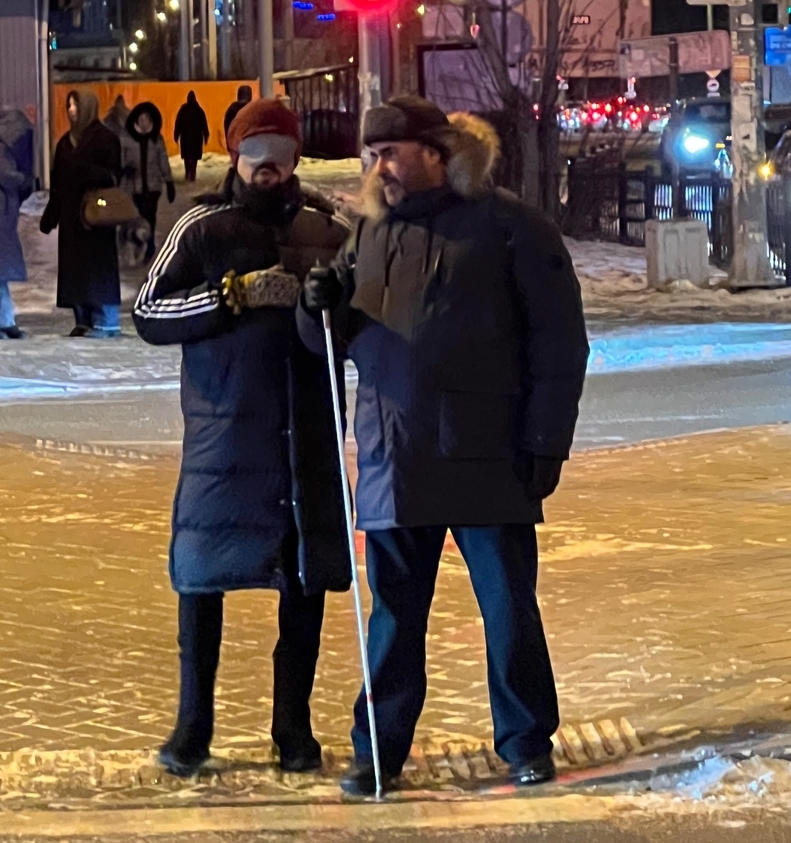 И у нас есть директор организации незрячих "Белая трость" Олег. И он мега крут. Потерял зрение в 18 лет от взрыва бомбы, двигает тему экстрабилити и устраивает адские колабы. Например, в Туве гоняет на яхтах в компании глухих, слепых и преодолевающих зависимость. И сегодня он предложил мне опыт. Он, слепой, завязал мне глаза и водил меня по Екатеринбургу. ОТ Гостиницы до его дома. Километра 3. Через центр. Дороги и мосты. И это был адовый пиздец. В какой то момент он дал трость в руки мне и сказал - а теперь ведешь ты. Вот представьте я. Вообще не тактильный. А тут надо держать его за плечо или он тебя. Я супер контролер и тут надо довериться слепому и совершенно незнакомому человеку. Я не сильно знаю екатские маршруты. Вечер. Гололед (в екате вообще не чистят дороги). И тьма. Тревога 100 из 10. Страх - 1000. Нервный смех. А Олег еще шутит: посмотрите направо - там вы увидите самый высокий северный небоскреб. Самое страшное - дорога. Ты стоишь, слышишь машины и орешь в пустоту - какой свет???? Отвечают не всегда. А в какой-то момент вдруг слышишь "Они че, слепые?".
