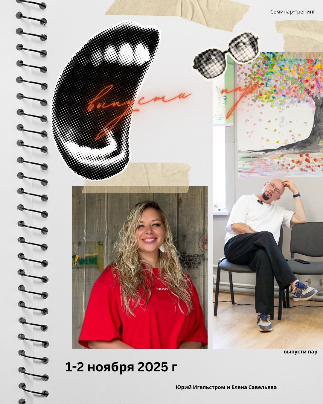 1-2 ноября с 10:00 до 17:00 по адресу: Курчатова 26 Юрий Игельстром и Лена Савельева проведут тренинг «Выпусти пар».