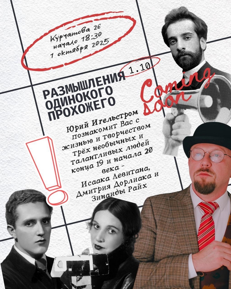 Будут размышления одинокого прохожего, истории трех талантливых людей с необычной судьбой, жизнь, творчество и наш Юрий Игельстром.