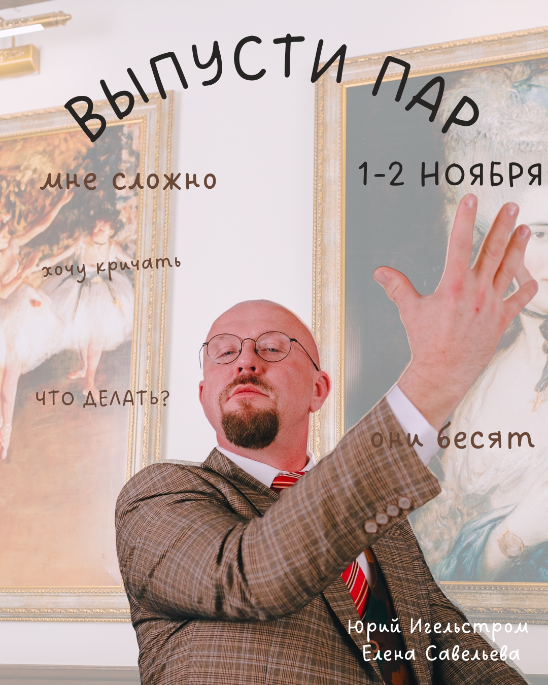 1. Юрий Игельстром и Лена Савельева проведут супер крутой тренинг "Выпусти пар" (вообще, нам странно, что вы не хотите избавиться от своих негативных эмоций и все еще ждете у моря погоды), а если не ждете, то вот ссылка для регистрации forms.yandex.ru/u/68b92cb7
