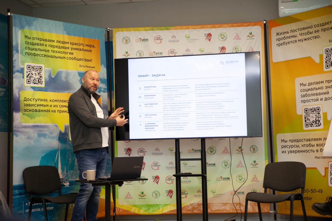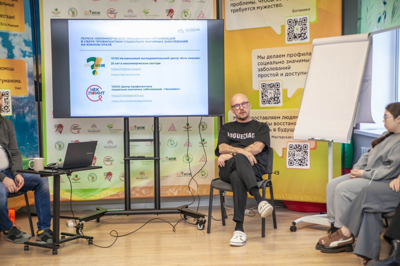 Чтобы лекция не была скучной, мы пригласили наших коллег: провокативного психолога Богдана Амброладзе из Центра аддиктологии и ассертивности «Ботаника», который подробно рассказал про свой проект «Работа с созависимыми людьми в формате провокативной психологии». Наш друг и коллега Евгений Федоров из Чекпойнт | Профилактика заболеваний | Челябинск подробно рассказал, как создаются и успешно реализуются проекты: от зарождения идеи до ее воплощения.